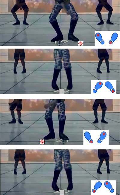 [→]:前述1の右足(爪先)で踏む。【ガニ股】