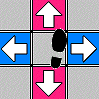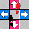 右移動→左移動(元に戻る)→左移動→右移動(元に戻る)。