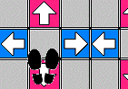 | ついでに、ダンセンのとある振りをDDR用にアレンジ して【バックブラッシュ(?)】でパネルを踏む(擦る) 動画も。2P側[↑]パネル。 |
